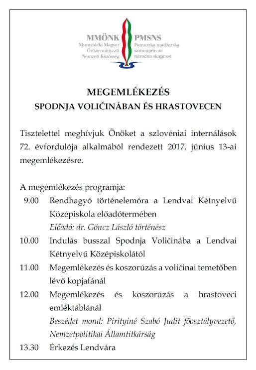 Megemlékezés Spodnja Voličinában és Hrastovecen