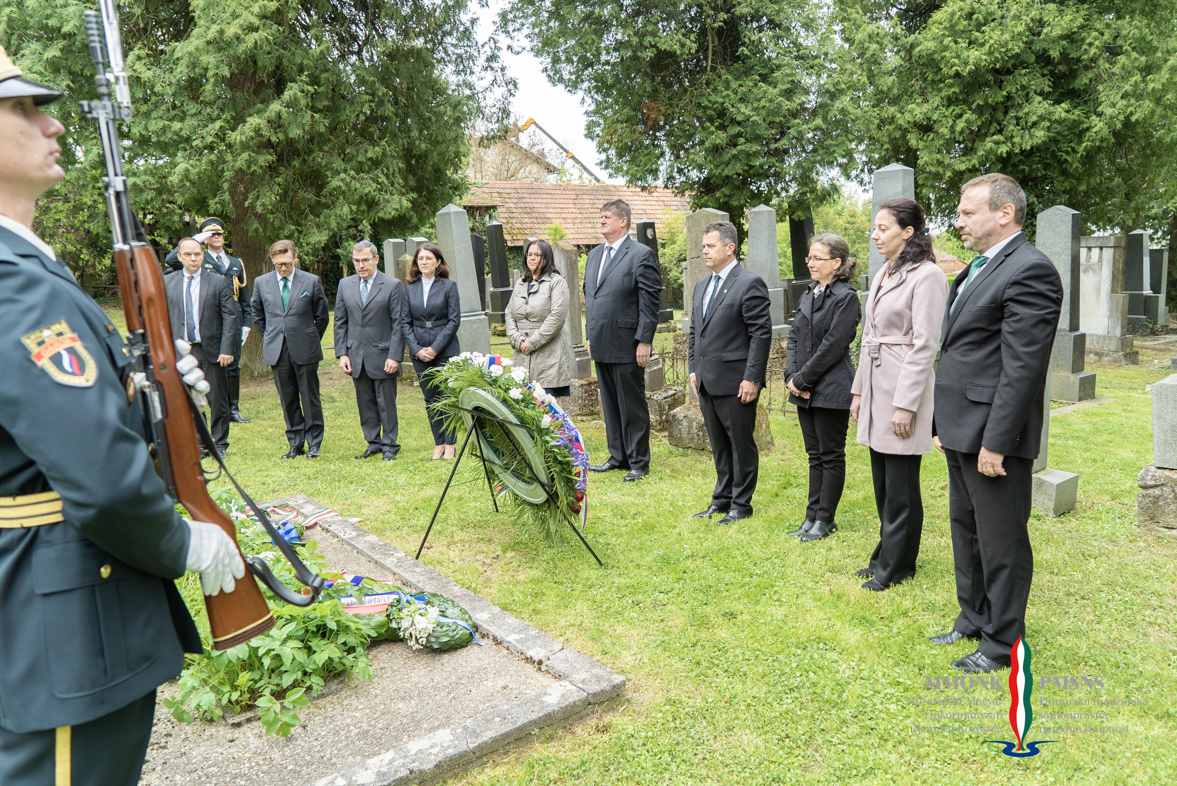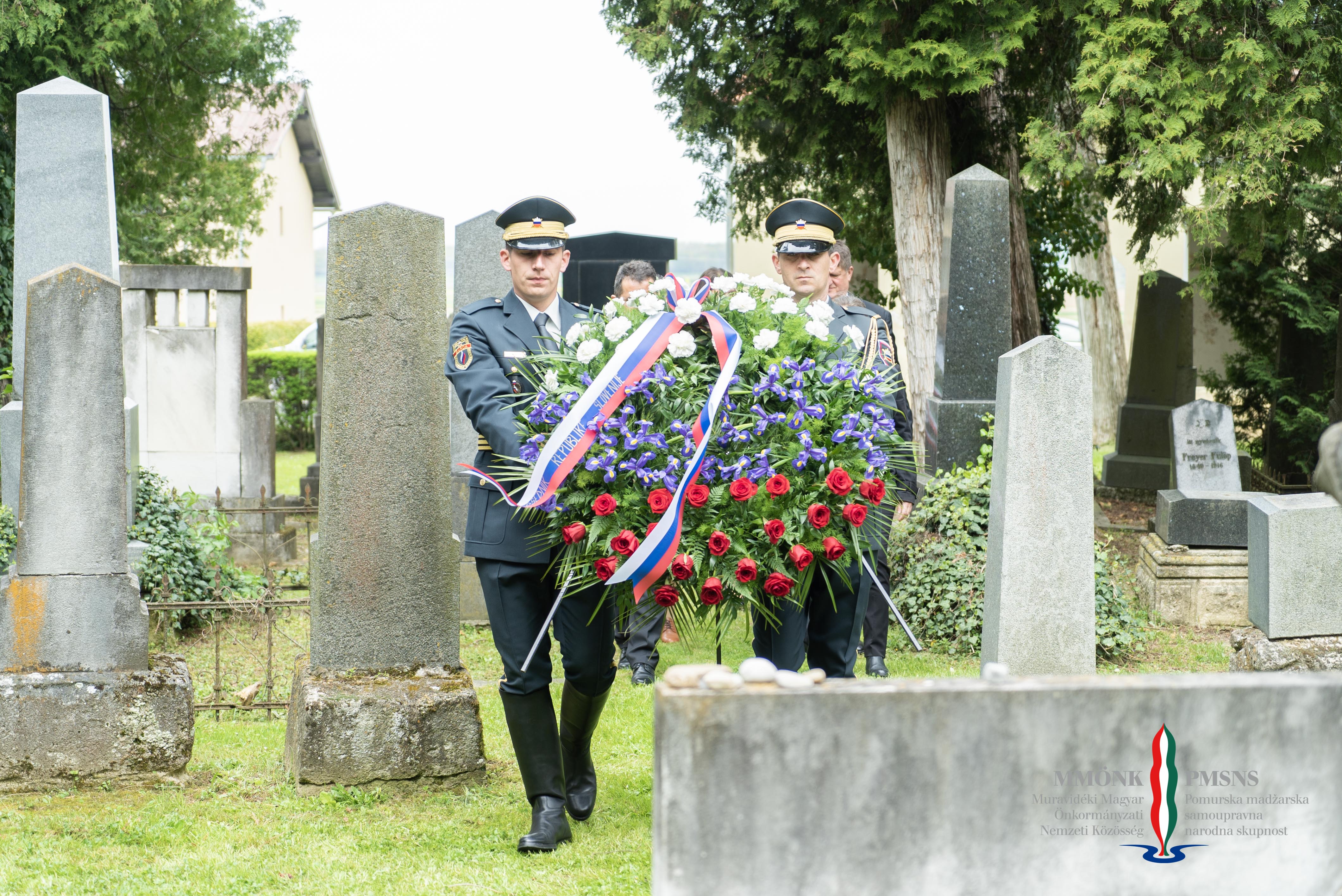 A projektbemutatót követően a helyi és nemzetiségi intézmények képviselői, köztük Horváth Ferenc, az MMÖNK Tanácsának elnöke is, a hosszúfalusi zsidótemetőben elhelyezték az emlékezés koszorúit.