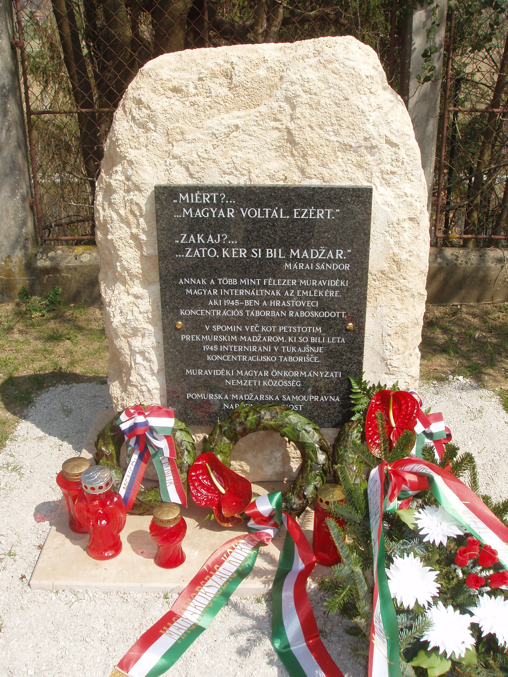 Na pobudo Pomurske madžarske samoupravne narodne skupnosti je v torek, 16. aprila 2013 potekalo slovestno odkritje spomenika v spomin prekmurskih Madžarom, ki so jih leta 1945 internirali v grad Hrastovec.